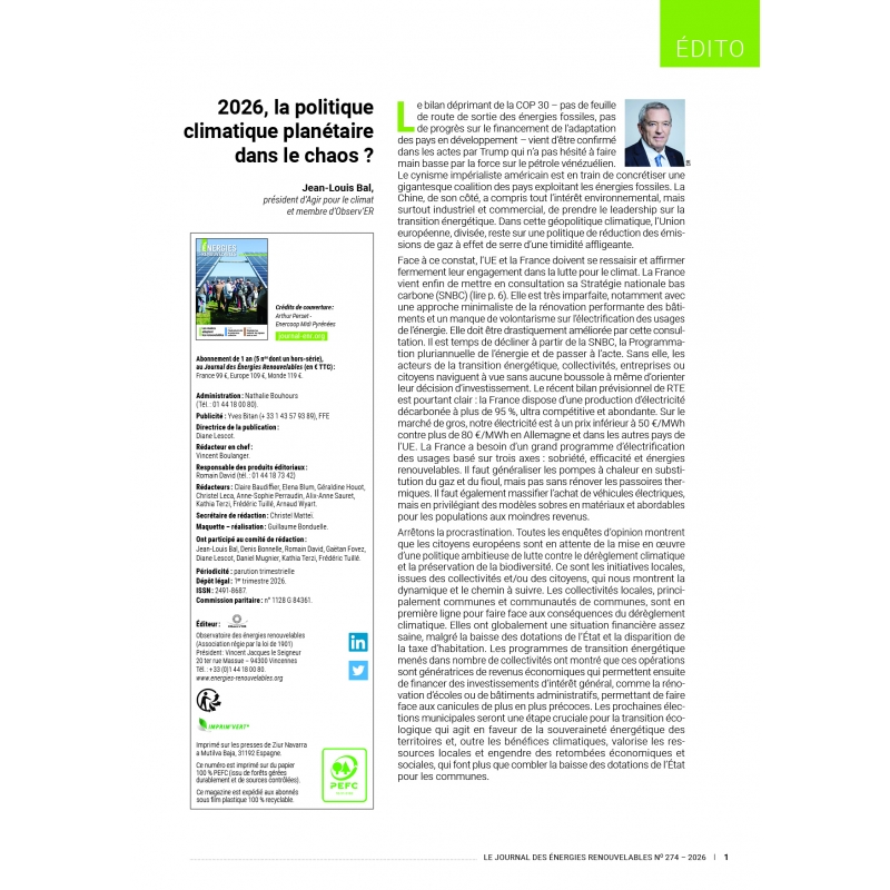 | Page 20 : | Dossier - Énergies renouvelables dans les communes, une chance à saisir |